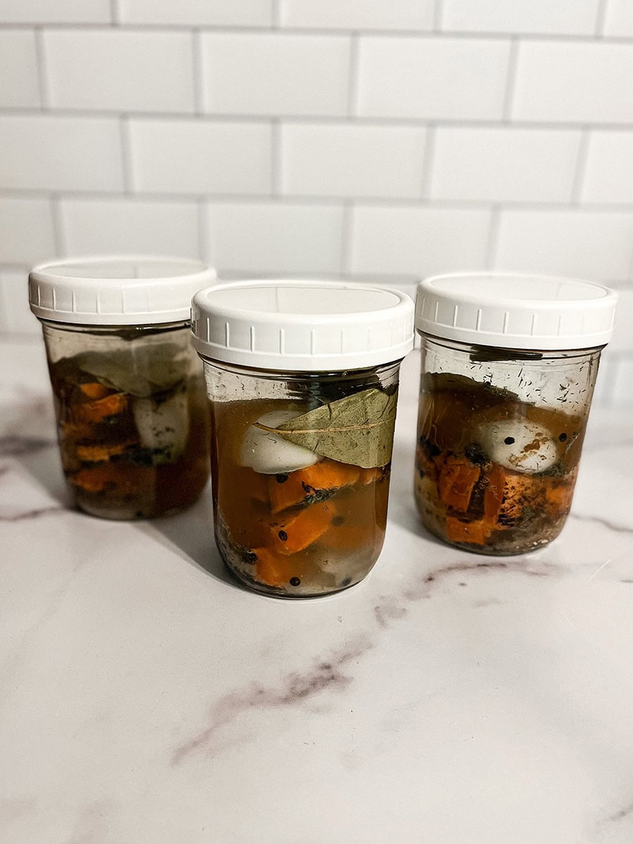 8. Leave the jars out on the counter at room temperature for 3 to 5 days. After 3 to 5 days, transfer the jars to the fridge.
